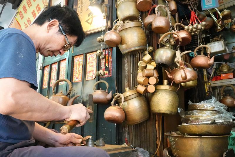 西关打铜工艺是老广州的文化名片,2009年被纳入《广州市第二批市级非物质文化遗产名录》。(广州日报·新花城记者:莫伟浓 摄) 制造工艺 精心制造模与范,工序繁复考验人 既然是去探寻铜镜制造工艺流程的,我们就得拿出小学生的态度,虚心观摩与求教。你看,工坊里有个老铜匠,刚刚打磨完一块铜镜,正满意地欣赏自己的作品。他打磨完的这块圆铜镜,表面十分光滑,对着照一照,虽然不如玻璃镜那样一下子把面容看得清清楚楚,但头发梳得是不是整齐,首饰戴得歪不歪,还是能看出来的。对“照镜”经验丰富的古代女子,脸上的粉涂得匀不匀,也能看得很准呢。 闲话少说,趁着老铜匠有空,赶紧上去请教吧。咱们先给他递口茶,对他的作品称赞几句,保管他打开话匣子。这不,他已经拿起一块泥坯说开了。“造铜镜啊,先得制模,就是用上好的陶土或灰砂,捏出模子。想造什么样的镜子,就捏成什么样的模子,菱花镜、八角镜、葵花镜……全靠我们一双手,模子的正面,得修整得十分光滑,考功夫,镜子的背面要雕刻各种花纹,就更考功夫啰。你看,我在这面铜镜背后雕刻的是水仙花,连镜子的钮座都刻出了水仙的样子。这刀工不好学,我当年不知道挨了师父多少打,才学会了这手功夫……” 老铜匠越说越兴奋,如果任由他说下去,光制模就得说上三天三夜。咱们趁着他停下来喝茶的功夫,赶紧提下一个问题:“模子做完了,下一步该做什么呢?”只听他“咕噜”一声,把茶咽了下去,说:“做完模子,得用火烧,烧好后,就该做范了。把两片陶土胚分别合到模子的表面与背面,压牢、夯实,模子的花纹就全印到土坯上了。印得不够好的地方,还得修修补补,两片外范做好后,拼在一起,用火烧透,晾凉,就可以浇铜液了。做范说起来比做模简单一些,也是很考功夫的,土质不好,或者烧的火候不到家,热铜液一浇下去,外范一裂,前面的活就白干了。这手艺是从祖师爷那里一代代传下来的,我当年跟师父学的时候……” 听着老铜匠在那里絮絮叨叨,你脑袋里突然灵光一闪,“模范”这个词的用法,是不是就是从这样的工艺里发源的。话说,铜镜的制造源于新石器时代,工艺代代传承与改进,也不只铜镜,青铜器与铁器的制造都离不开制模与制范,你这么想,也不是没依据,咱们回头再一查究竟吧。
