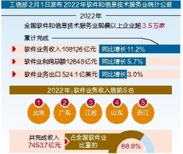 软件业务收入广东位居全国第二