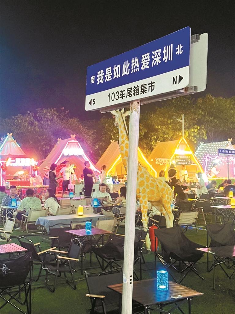 到车尾箱集市喝冷饮、吃美食、逛摊购物,成为不少深圳人休闲娱乐的新选择 集市场地范围约1000平方米,可以容纳100多辆汽车同时摆摊,为摊主和顾客带来全新的消费社交平台,既丰富了市民的夜生活,也刺激了深圳夜经济发展。车水马龙是城市,大厦商圈是城市,满载“烟火气”的路边摊也是构成城中之“市”不可或缺的重要场所。 近日,深圳通过了新修订的《深圳经济特区市容和环境卫生管理条例》,明确从今年9月1日起不再全面禁止路边摊。这也意味着,深圳以法律的形式为路边摊“松了绑”。目前龙岗区部分街道已开展“摆卖”试点,103车尾箱集市就是其中一个集中摆摊点。 《条例》实施以后,103车尾箱集市主办方也计划扩大集市的使用面积,把集市划分为露营区、车尾箱区、三轮车区、地摊或其他形式摆摊区,摊位增设至300个,统一规划专人管理,“我们也要求摊主做到摆摊摆成一道风景线,做到有序、美观、摊主有钱赚、消费者体验好,让103车尾箱集市作为龙岗区甚至深圳市,管理规范地摊经济的典范。”主办方负责人王志波说。