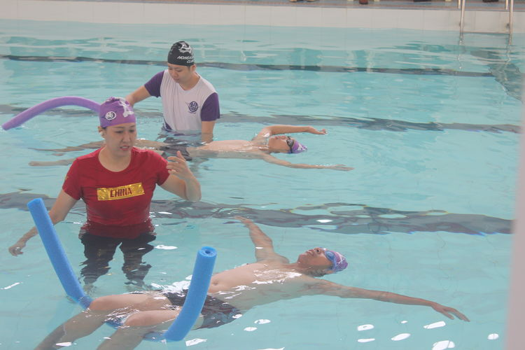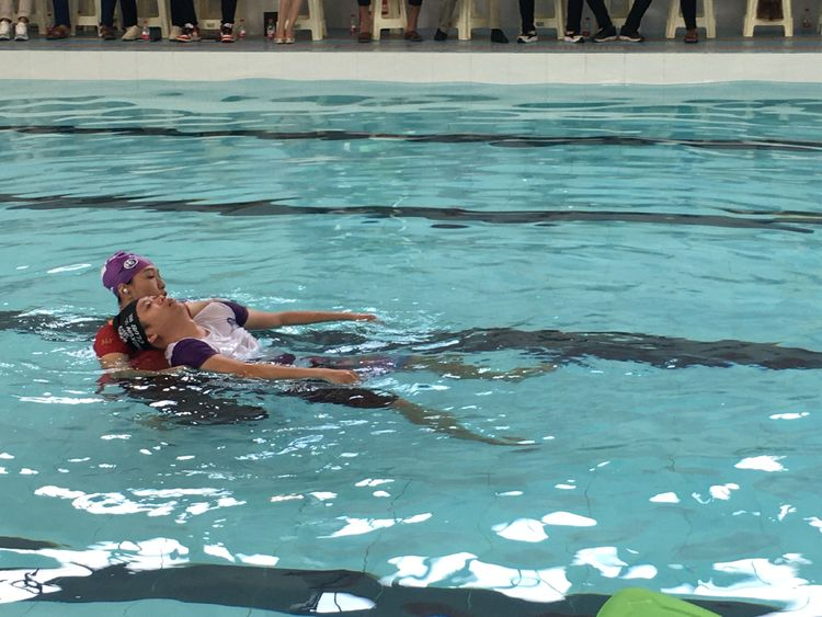 杨教练演示正确施救溺水者的方法。