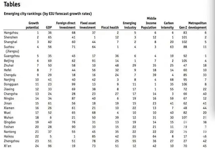 杭州蝉联榜首!经济学人智库分析中国最具潜力的新兴城市