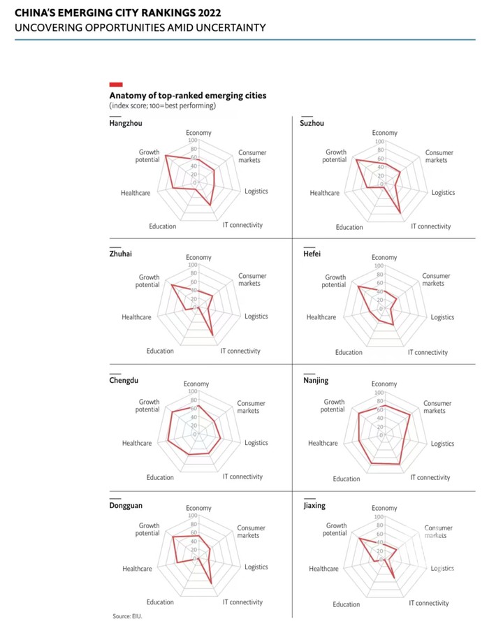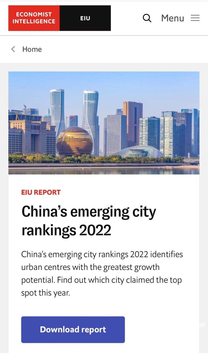 外媒评选的中国最具潜力新兴城市榜单,杭州位居榜首,深圳位列第二,上海第三! 近日,经济学人智库(Economist Intelligence Unit)发布了“2022中国新兴城市”白皮书,公布了中国最具潜力的新兴城市。 为了帮助企业和政策制定者发掘城市发展蕴含的机遇,经济学人智库(The EIU)自2010年起每年发布相关报告《中国新兴城市排名》,深入探讨中国城市的发展进程。